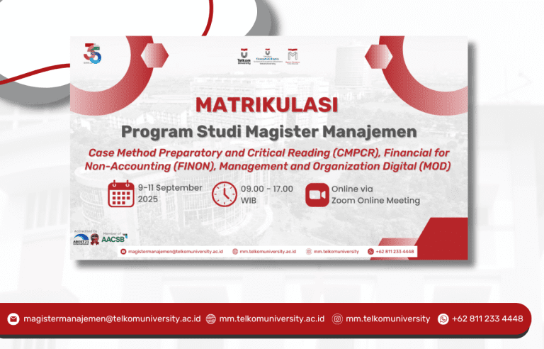Magister Manajemen Telkom University telah mengadakan kegitan Matrikulasi Semester Ganjil Tahun Ajaran 2025/2026 selama tiga hari yaitu pada tanggal 9-11 September 2025. Kegiatan Matrikulasi ini dilaksanakan secara daring melalui Zoom Online Meeting. Kegiatan Matrikulasi ini terdiri dari tiga mata kuliah yaitu sebagai…