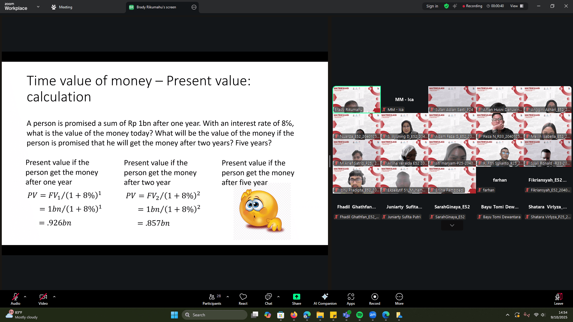 - Rabu, 10 September 2025: mata kuliah Financial for Non-Accounting (FINON) yang diampu oleh Dr. Brady Rikumahu.