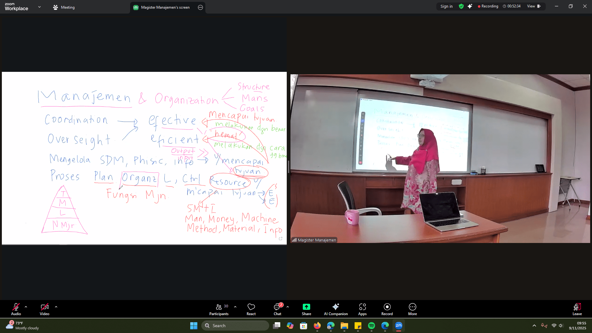 - Kamis, 11 September2025: mata kuliah Management & Organization Digital (MOD) yang diampu oleh Dr. Maya Arianti.